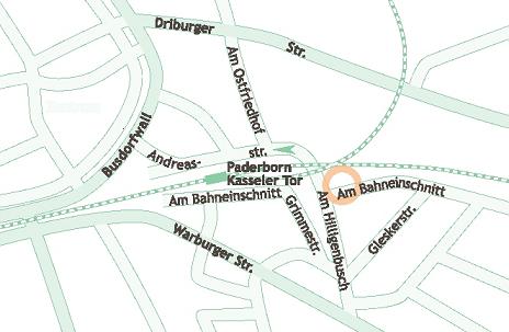 Fahren Sie stadtauswärts auf der Warburger-Str. Richtung Universität und biegen Sie in Höhe der Sparkasse links in die Straße Am Hilligenbusch. Folgen Sie dem Hilligenbusch und biegen Sie die 3. Straße rechts ab.